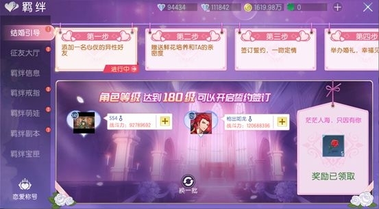 誓約條件:1.雙方為異性且等級(jí)達(dá)到180級(jí)