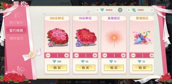 玩家可以到誓約商城內(nèi)購(gòu)買各種鮮花于誓約慶典內(nèi)使用