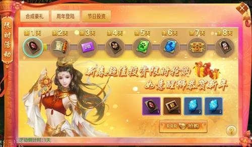 活動內(nèi)容:消費888元寶投資,可連續(xù)領(lǐng)取8天獎勵。