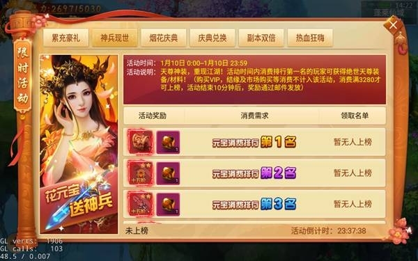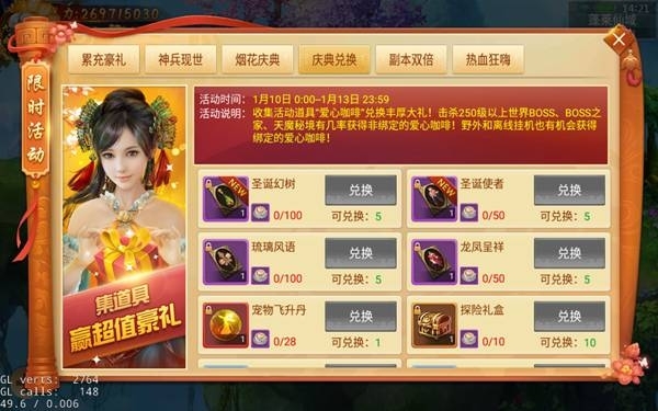 感恩慶典活動(dòng)限時(shí)開(kāi)放,1月10日-1月13日開(kāi)啟感恩慶典活動(dòng),活動(dòng)期間每日登陸均有好禮相送,累計(jì)充值更有額外大禮,副本雙倍掉落限時(shí)開(kāi)啟,快速?zèng)_級(jí)就是這么簡(jiǎn)單。慶典煙花,幸運(yùn)豪禮爆爆爆!(新服首周設(shè)有豐富的開(kāi)服活動(dòng),暫不開(kāi)啟該活動(dòng))