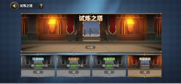 第二類為四種陣營塔,在玩家達到開啟條件后開啟,玩家在陣營塔中只能上陣5名同陣營的英雄進行挑戰,且每日每種陣營塔有通關次數限制,需要注意的是每天會開啟一座不同的陣營塔。