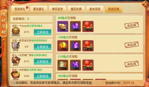 活動說明:活動期間,完成項目即可獲得嗨點,滿足嗨點條件即可領取超值獎勵!