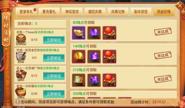 活動說明:活動期間,完成項目即可獲得嗨點,滿足嗨點條件即可領取超值獎勵!